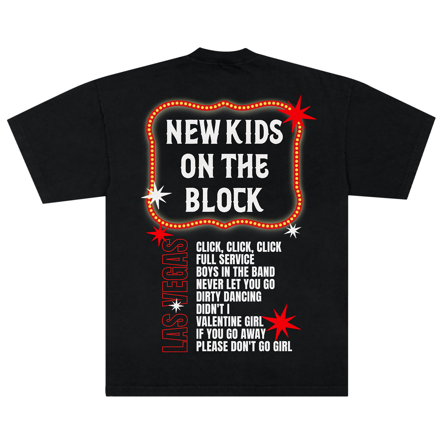 Black 100% cotton short sleeve tee with The Right Stuff Residency photo artwork on the front and The Right Stuff song titles on the back